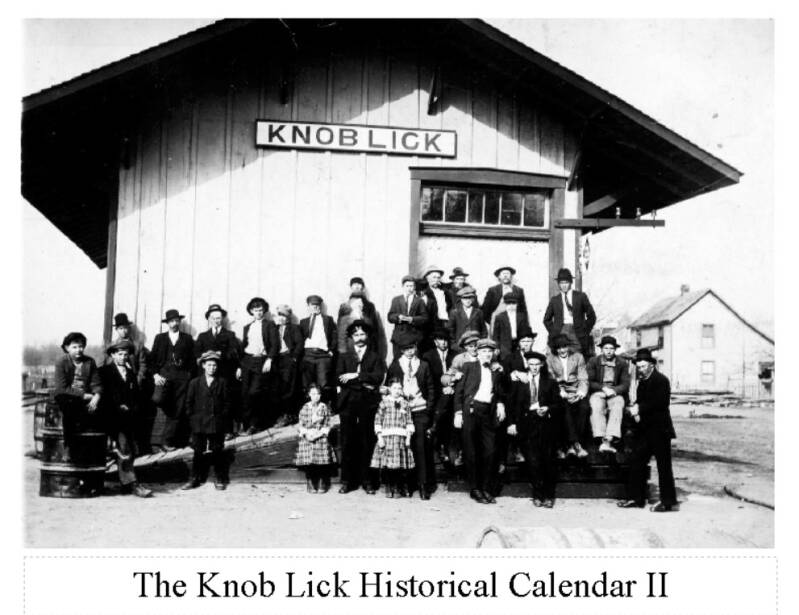 Relive Knob Lick in its glory days. The first Knob Lick Calendar has twelve historical pictures of the businesses, railroad, school and families of years gone by. The second Knob Lick Calendar has twelve pictures of the Knob Lick Bass Band as it meets the special trains, the Union Church and it's congregation and five couples celebrating 50 or more years of marriage. Last the St. Louis, Iron Mountain and Southern Railway. Bought by the Missouri Pacific Rairoad in 1917. Each photo reliving the days when the railroad ushered in the Golden Age of Transportation. Each picture is printed on quality matte photo paper. Each calendar is $15 and $4 postage.