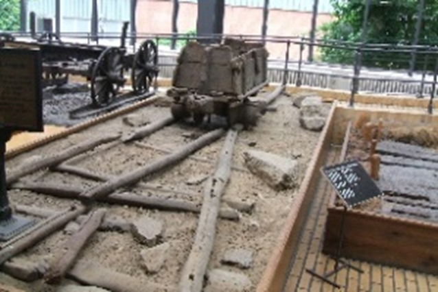 The above picture is of a section of track from the 16th century gold mine in Transylvania. The wooden wheels, which had a pronounced flange, guided the wagon along. The rails were made of crude logs, made out of small trees, placed atop cross ties.1 Today you would almost laugh at it, but back in the day it was the “Bees Knees.” Wrong era, but you get the drift.